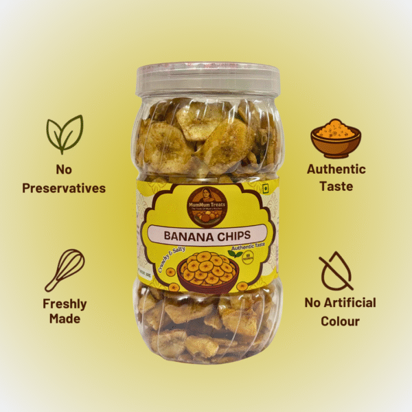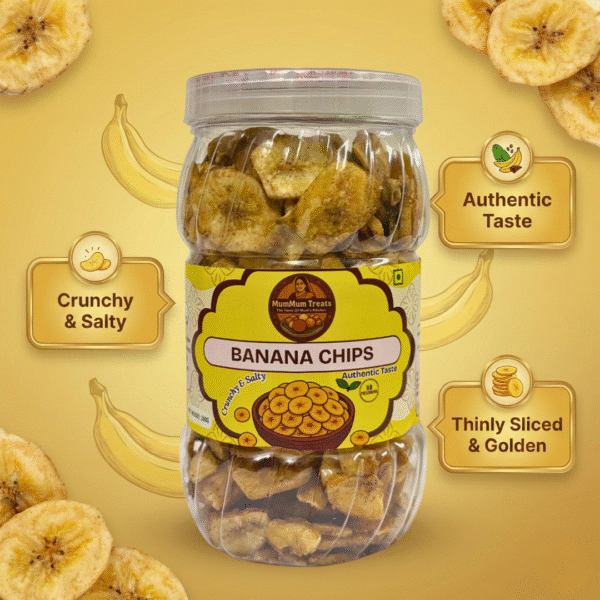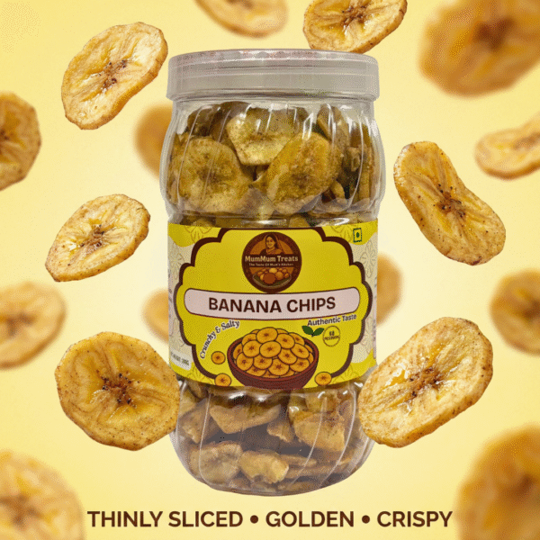 Enjoy the classic taste of MumMum Treats Banana Chips, a crunchy and salty delight that makes snacking truly satisfying. Thinly sliced raw bananas are fried to golden perfection, creating a light, crispy texture with just the right amount of saltiness.