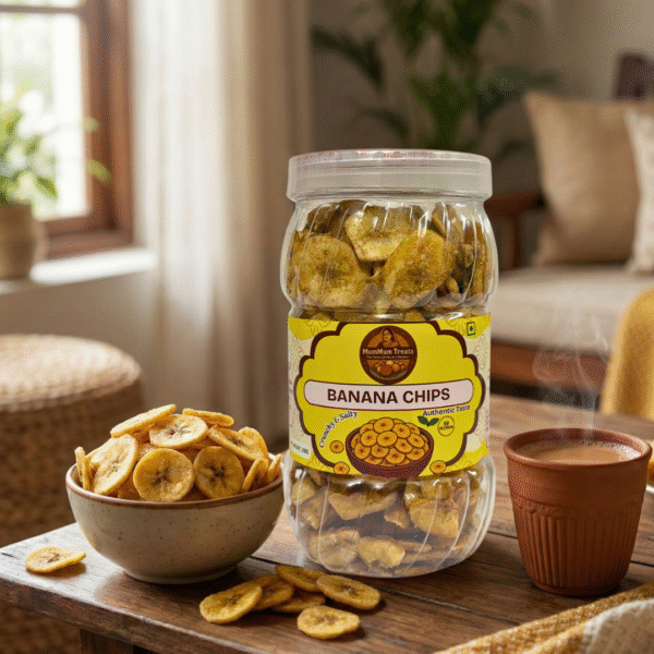 Handmade in small batches, our Banana Chips are prepared in a hygienic kitchen without preservatives or artificial colors, ensuring every pack is fresh and full of authentic flavor. Perfect for tea-time, travel, office breaks, or anytime cravings, this South Indian-inspired snack is both simple and irresistible.