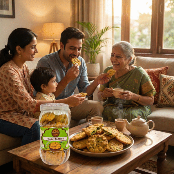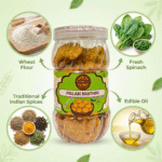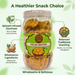 Handmade in small batches and prepared in a hygienic kitchen, our Palak Mathri contains no preservatives or artificial colors, making it a wholesome snack for tea-time, travel, or family get-togethers. Crispy, flavorful, and fulfilling – it’s a snack that turns your “cravings into happiness.”